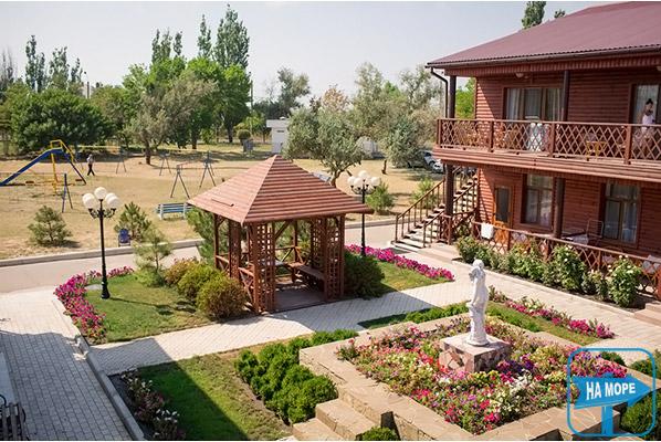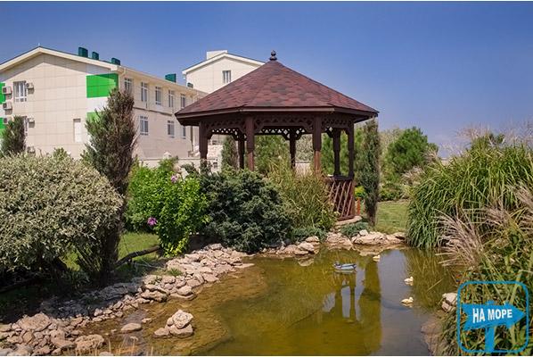 у отеля большая зеленая территория, занимающая площадь 6 Га. На территории есть автостоянка на 60 машин, конференц-зал на 300 человек, спортивные площадки, настольный теннис и теннисный корт, тренажерный зал, бадминтон, йога, летняя эстрада, кафе, сауна, бильярд, массажный кабинет, косметический кабинет, большая парковка, анимация, кинотеатр, водные аттракционы, дискотека, детский игровой городок, детская игровая комната, зал компьютерных игр и интернет-клуб. Также есть бассейн, библиотека, мини футбол, пляжный футбол и волейбол. Регулярно проводятся экскурсионные программы, тематические вечеринки и шоу-программы.