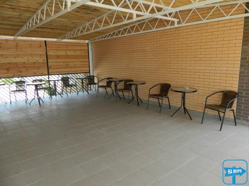 Рядом расположено кафе с летней площадкой. Меню кафе изобилует традиционной украинской кухней, а также Вы сможете заказать фирменную пиццу от шеф-повара.