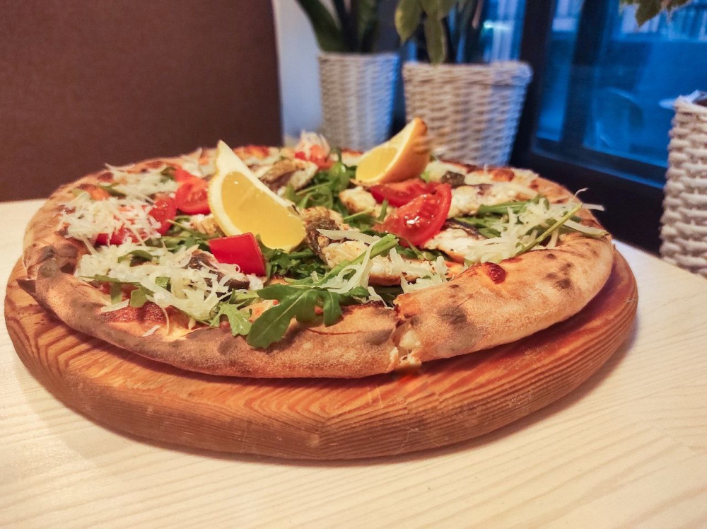 Пицца по-Генически с морепродуктами. Вот многие заведения в мире и нашей стране всегда позиционируют свою пиццу как блюдо итальянской кухни, а на самом деле кроме названия и схожей рецептуры ничего общего практически нет. Настоящая итальянская пицца только в Италии, или, за редким исключением, сохранения традиций после эмиграции в национальных ресторанах. Поэтому здесь вам не всякие там маргариты и неаполитано, ну представьте, что в Неаполе Джованни будет пытаться приготовить жареные Азовские бички по Генически. Представили? Вот так то. Всё очень правильно и честно – пиццу по-Генически стоит купить только из-за названия. А она еще и вкусная, очень.
