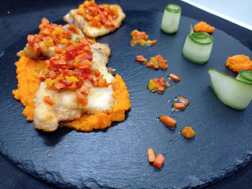 Филе Азовского пиленгаса с гороховым пюре в сливочном соусе. Это что-то невероятное. Пиленгас – это дальневосточный вид кефали, который был искусственно акклиматизирован в Азовском и Черном морях. Рыба очень практичная, крупная и вкусная, поэтому приготовить её плохо практически невозможно. Но в данном случае получилось какое-то колдунство и всамделишная магия – ибо как можно придумать такое шедевральное сочетания нежной рыбы и вкуснейшего горохового пюре, которые объединяет соус? Однозначно фирменное блюдо со справедливой претензией на niveau restaurant никого не оставит равнодушным.