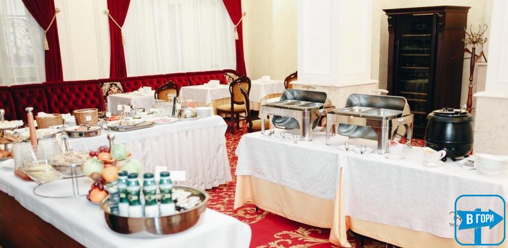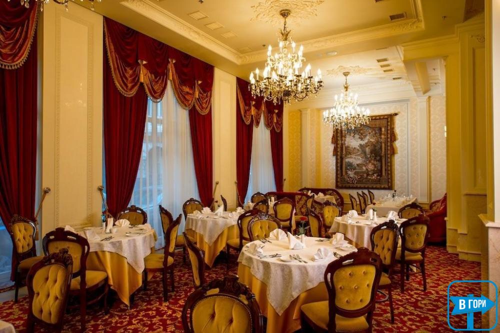 Каждое утро в ресторане отеля подается континентальный завтрак. В отеле также есть как круглосуточный ресторан, так и лобби-бар. Также при отеле есть бар с бесплатным Wi-Fi, живой музыкой и пианино. Гостям нужно будет пройти 5 минут, чтобы поужинать в баре "Кондитерская-ресторан "Вероника"".