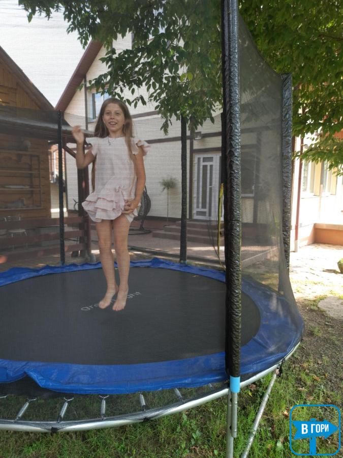 Для детей есть батут. Также в теплое время года работает каркасный бассейн.