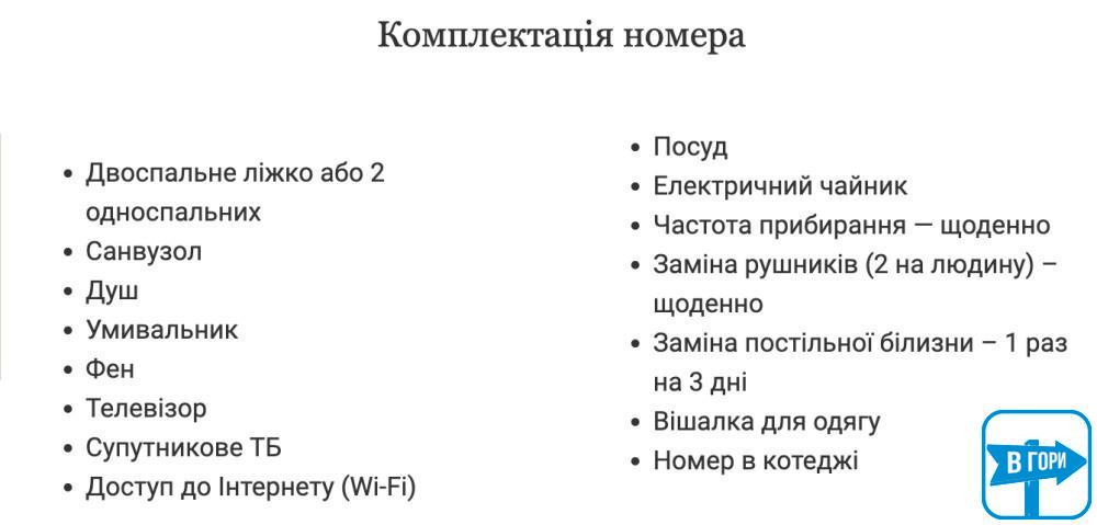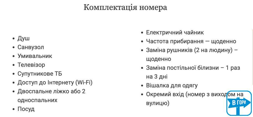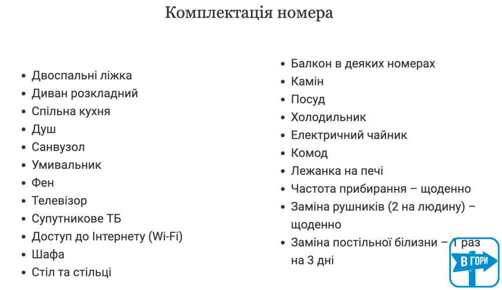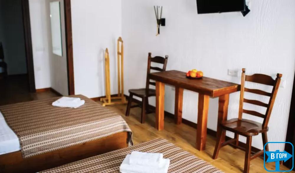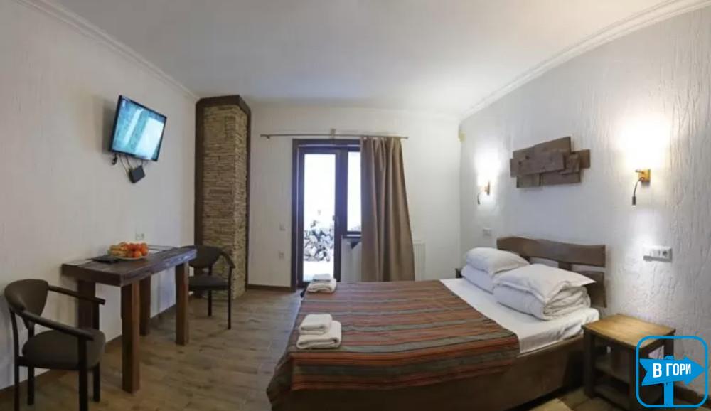 Все номера с балконами, есть возможность организовать дополнительное спальное место. Особой изюминкой является номер с печью и 4-х местный номер с камином. В отеле ведется видеонаблюдение. По предварительному согласию возможно проживание с небольшими домашними питомцами.