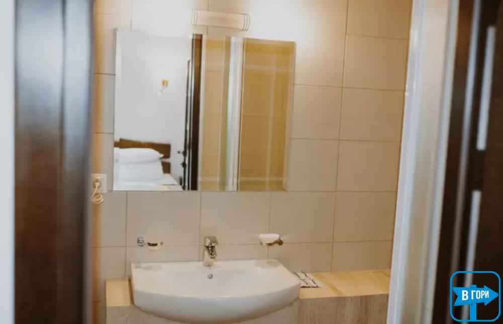 Независимо от ценового предложения и наполнения номеров, в каждом из них есть двуспальная кровать, телевизор. Санузел оборудован душем, унитазом, умывальником, есть фен полотенца и тапочки.
