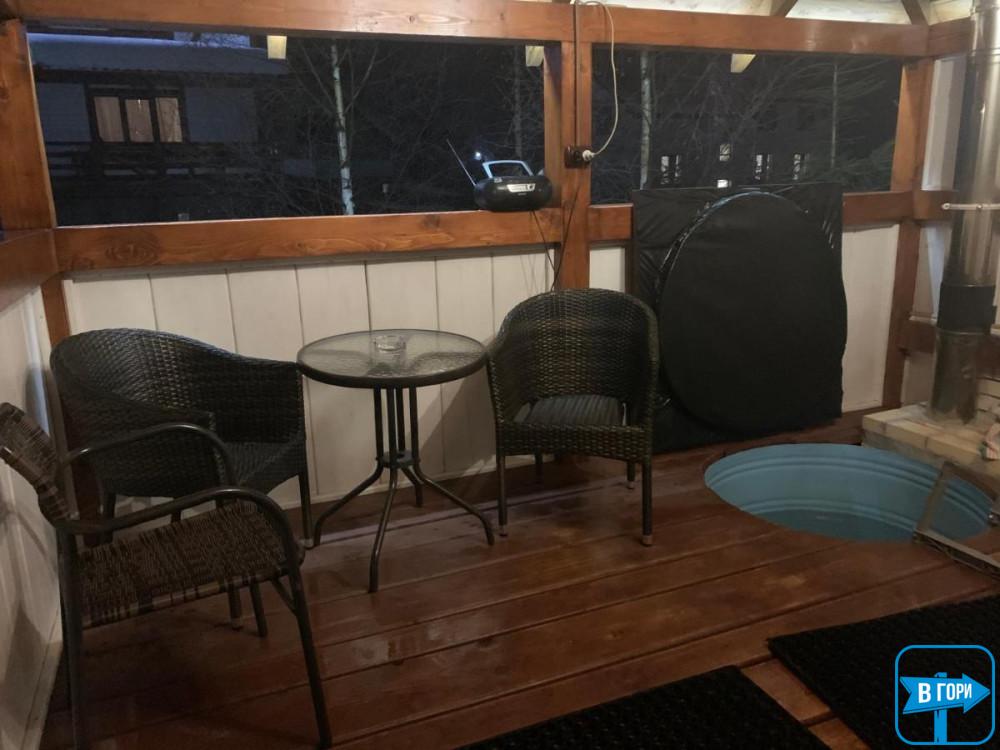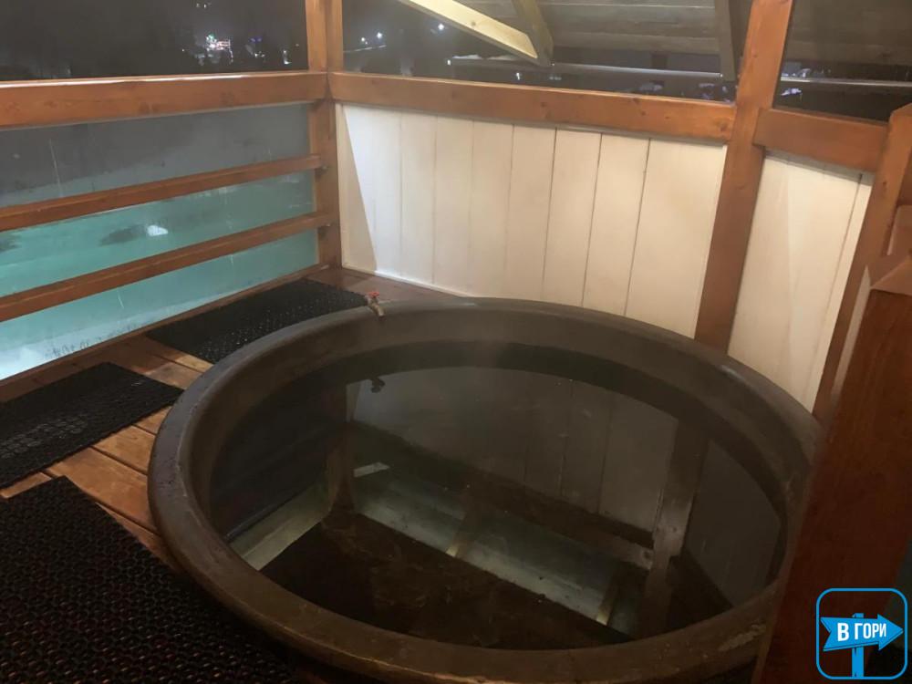К услугам гостей - баня на 6 человек с комнатой отдыха и кадкой для обливания.