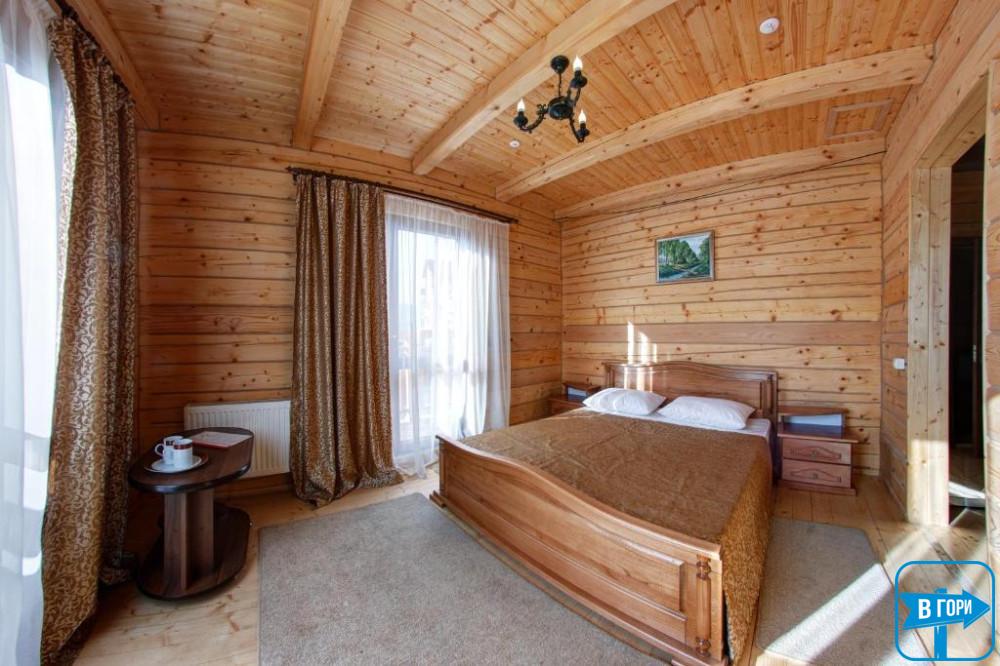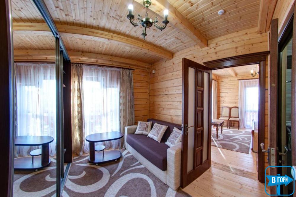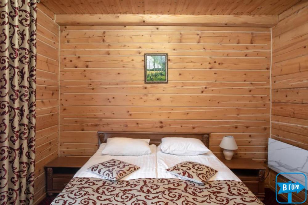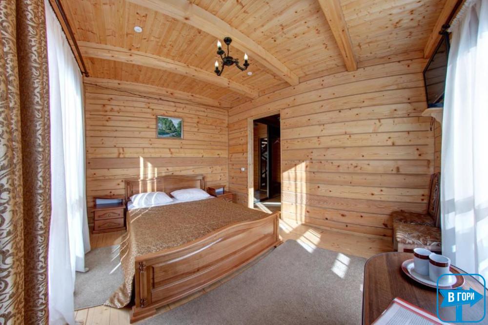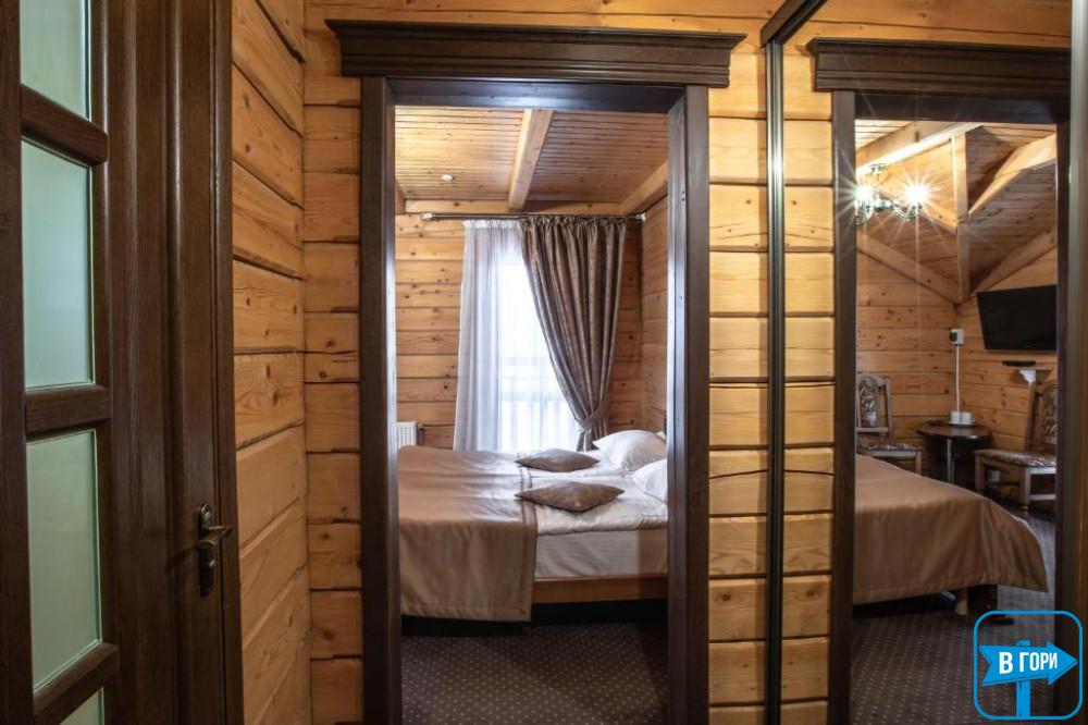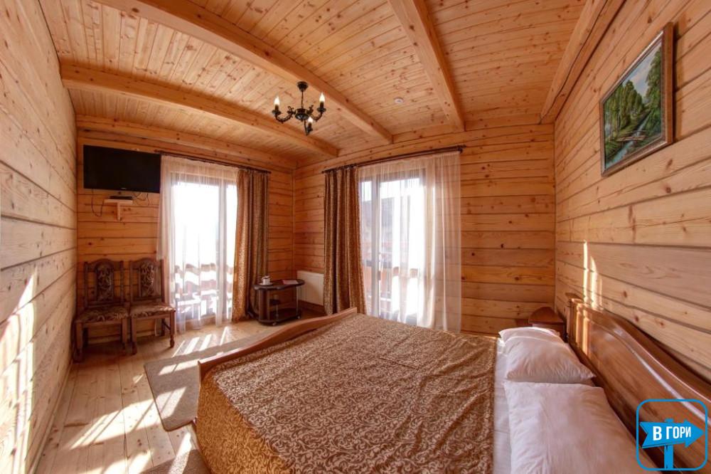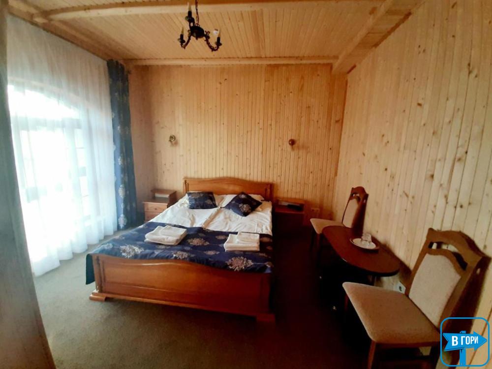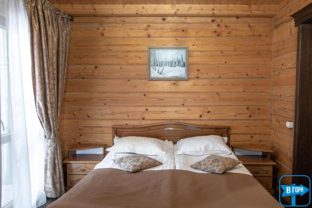 Здесь вас ждет удобная двуспальная кровать и комфортный диван, два телевизора, сейф, стол, холодильник.