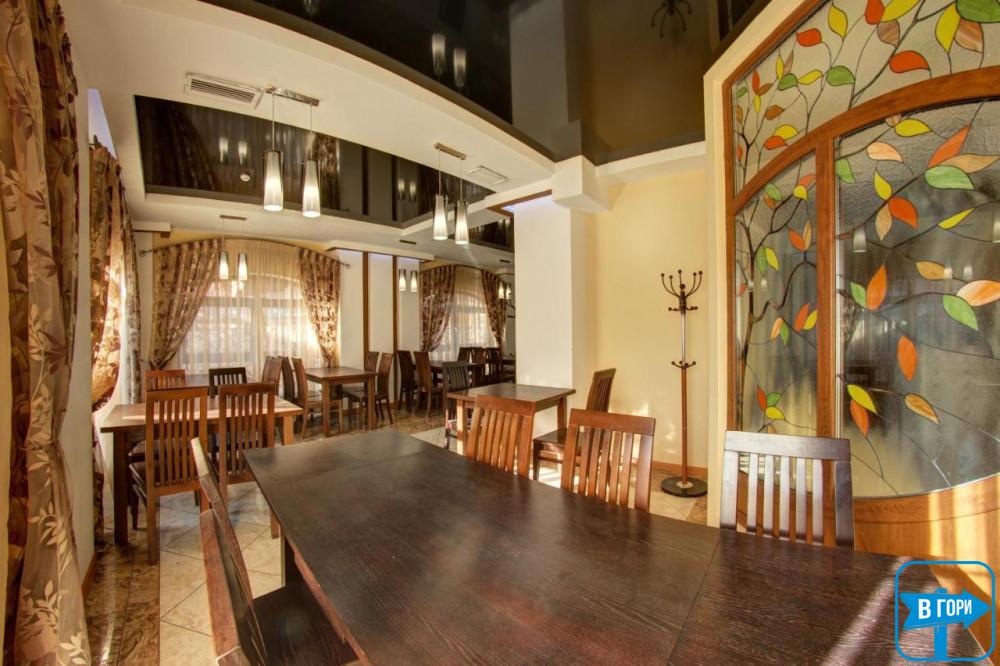 Есть в отеле и свой ресторан, оформленный в модерн-стилистике. Местные повара порадуют вас вкуснейшими гуцульскими аутентичными блюдами. В меню и европейская, украинская еда, а еще еда-гриль и еда-барбекю.