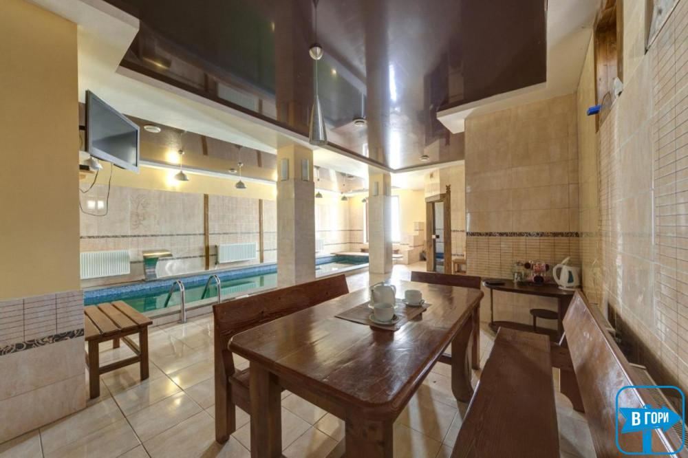 Отель в Буковеле с бассейном – это отличная возможность расслабиться. После насыщенного эмоциями и впечатлениями дня вы всегда сможете отдохнуть в нашей сауне, рассчитанной на восемь человек и оснащенной комнатой отдыха, листовым душем и бассейном площадью 27 метров. Из сауны есть выход на летнюю террасу.