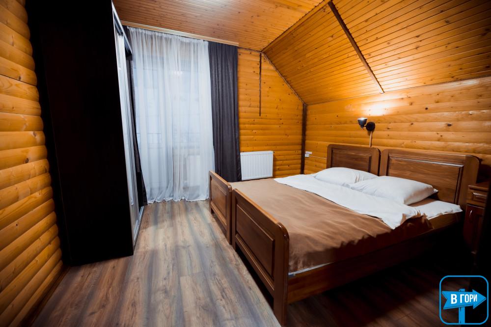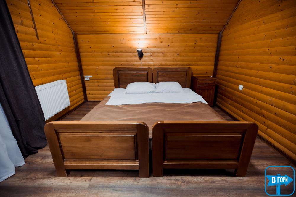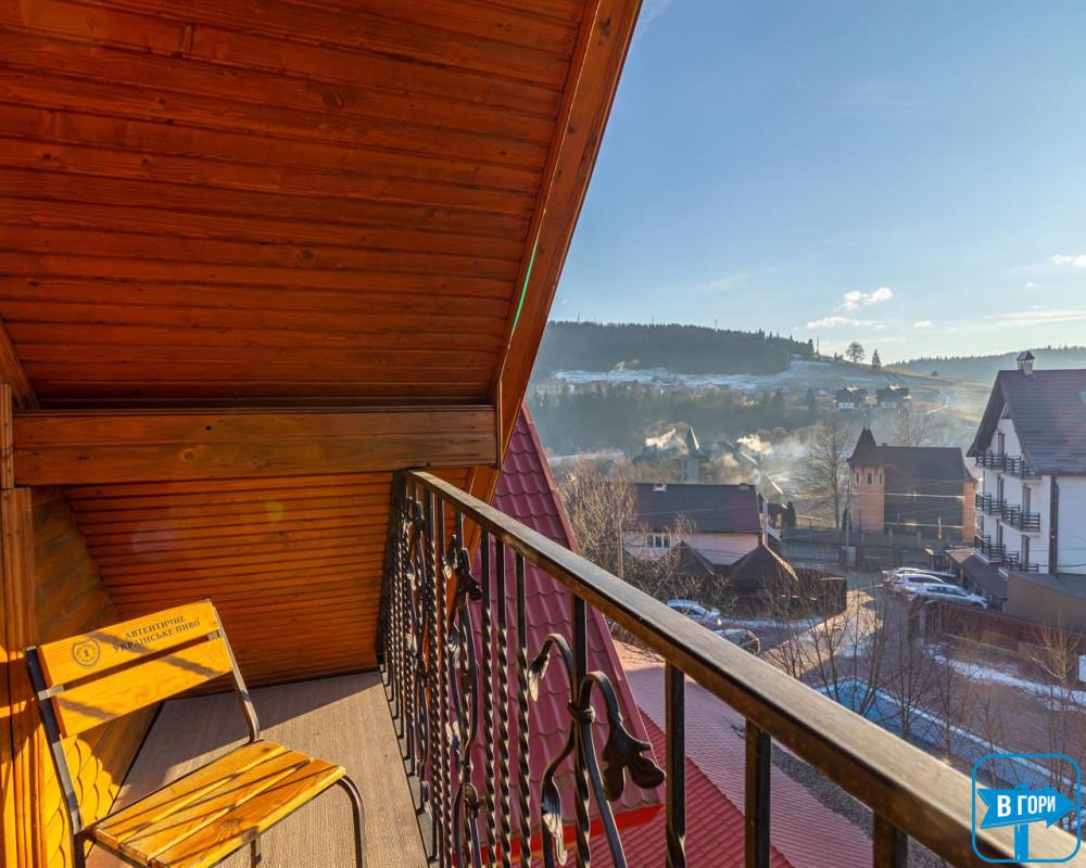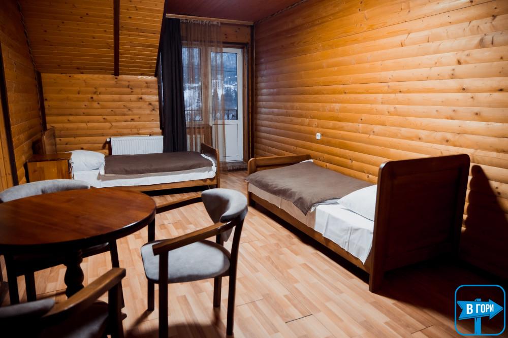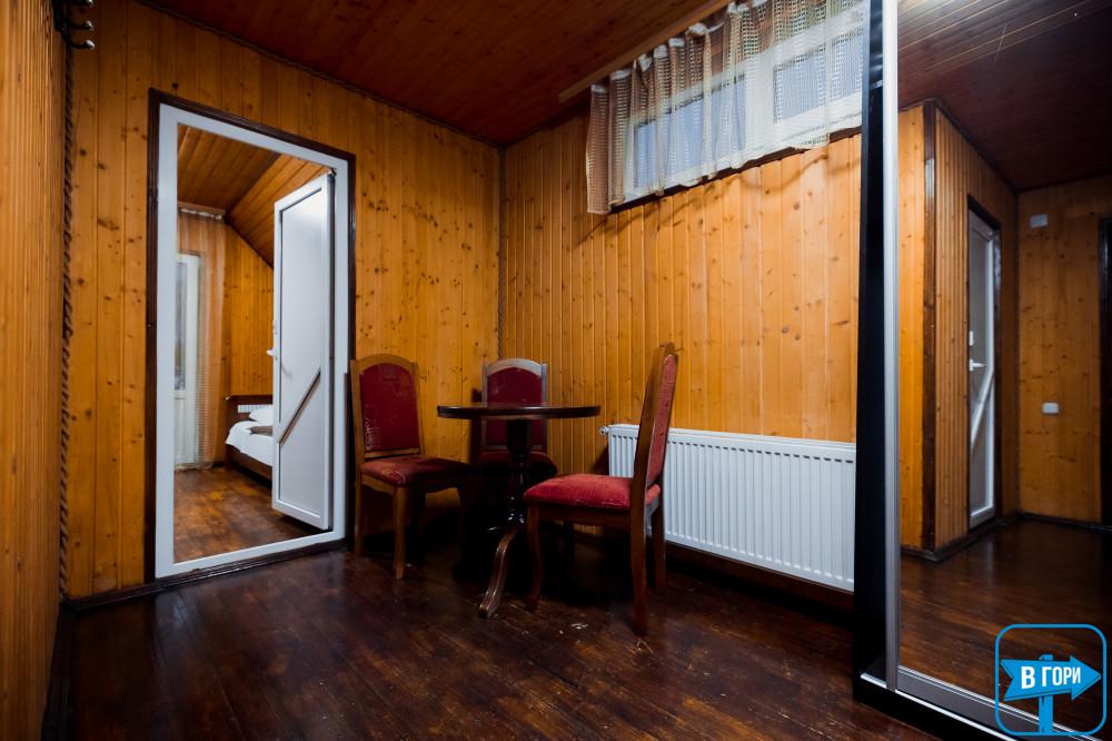 однокомнатный, четырехместный номер, общая площадь – 40 м.кв. - 2 двуспальные кровати, диван, спутниковое ТВ. Санузел (душевая кабина, унитаз, умывальник), количество полотенец – 2 на человека. Балкон с видом на горы.