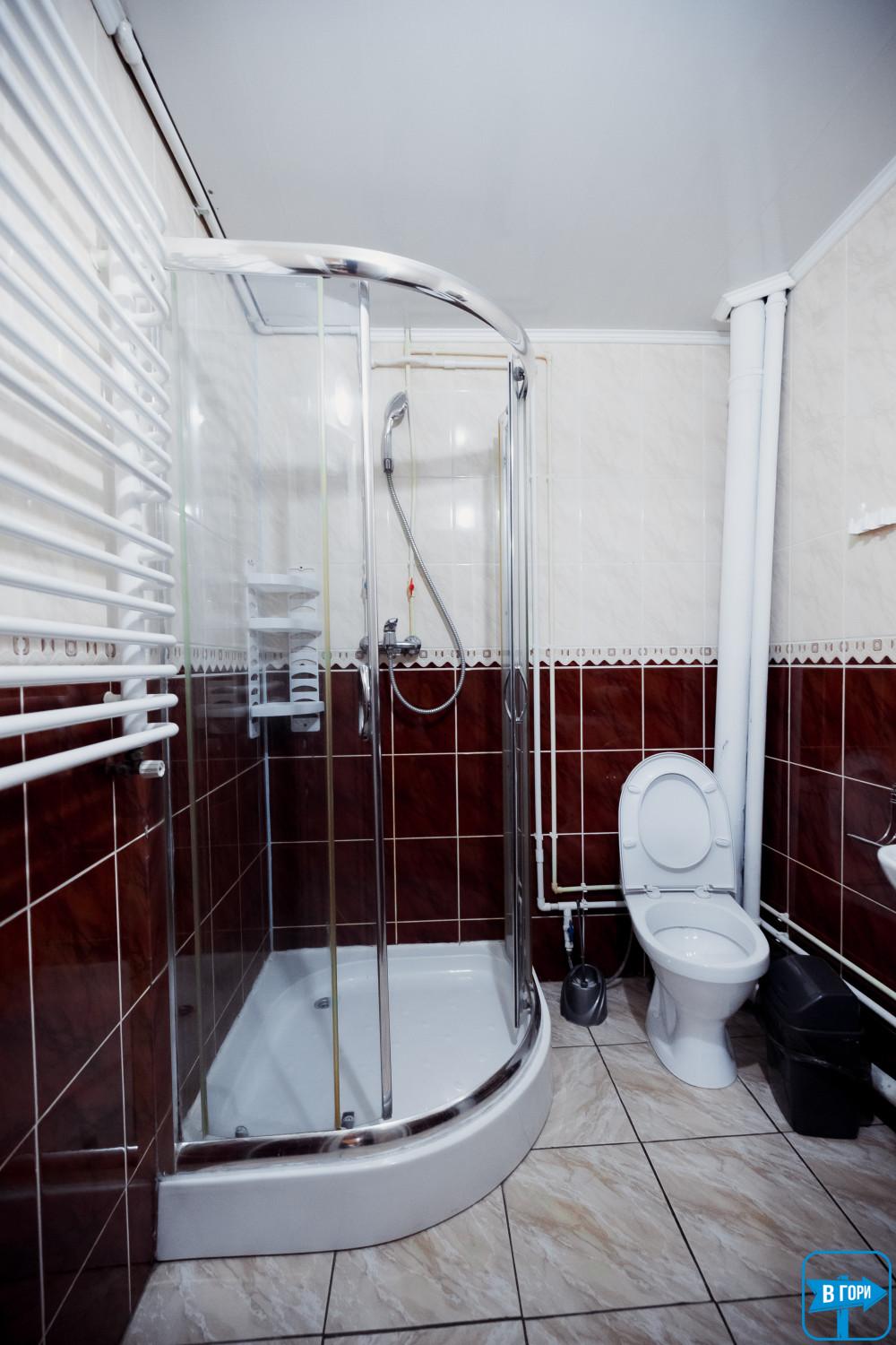 однокомнатный, двухместный номер, общая площадь – 20-25 м.кв. - двуспальная кровать, спутниковое ТВ. Санузел (душевая кабина, унитаз, умывальник), количество полотенец – 2 на человека. Балкон с видом на горы.