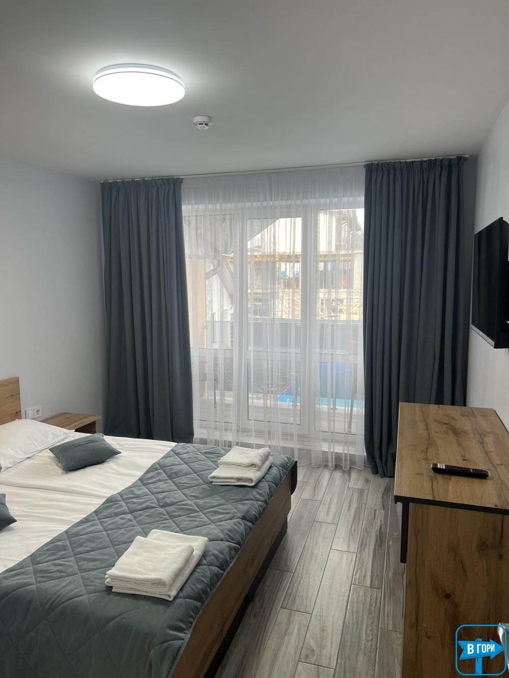 3 двухместные номера (в каждом есть 2 односпальные сдвигающиеся кровати, телевизор, балкон);