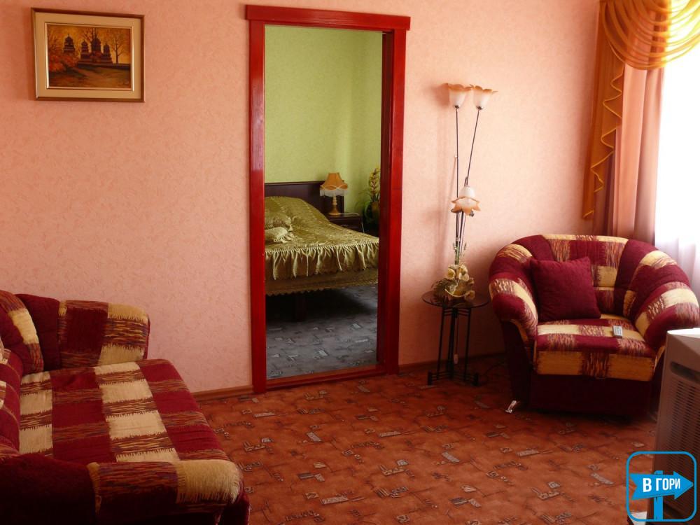 Комплектация номера: раскладной диван или двуспальная кровать, стол журнальный, шкаф-купе