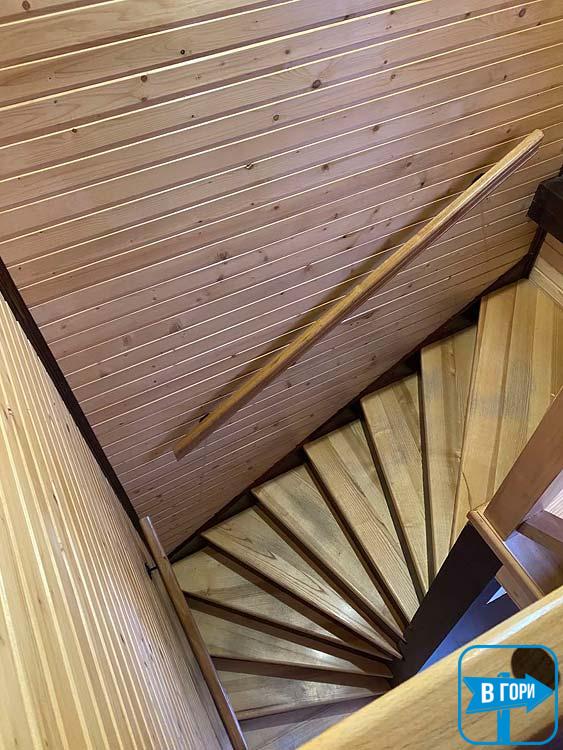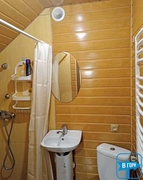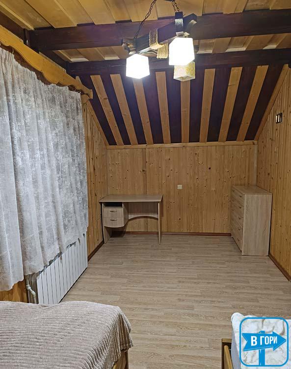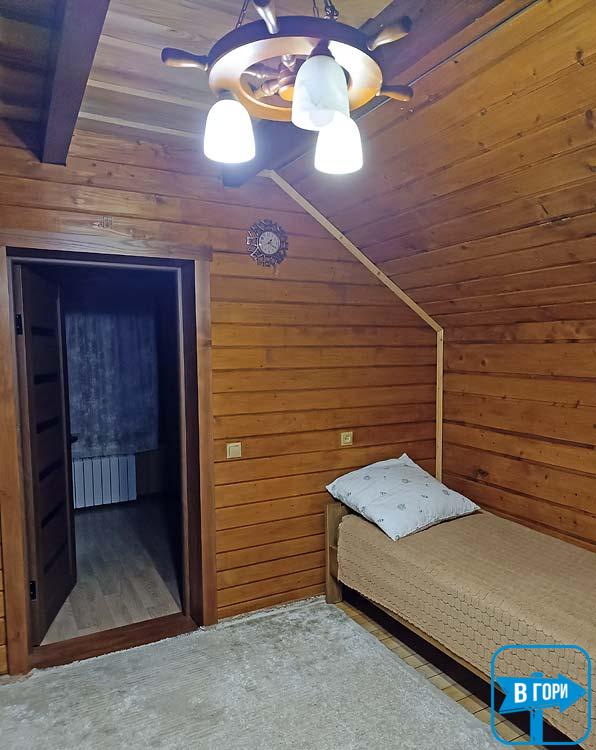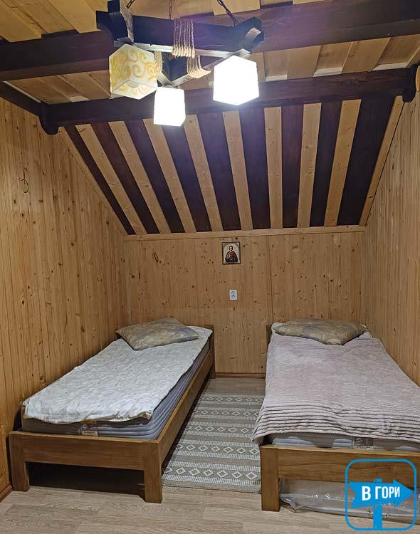 - Второй этаж: две смежные комнаты, каждая из которых имеет две односпальные кровати и комод; одна из комнат имеет балкон. Также на втором этаже находится санузел (душ, туалет, умывальник).