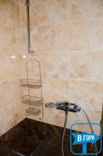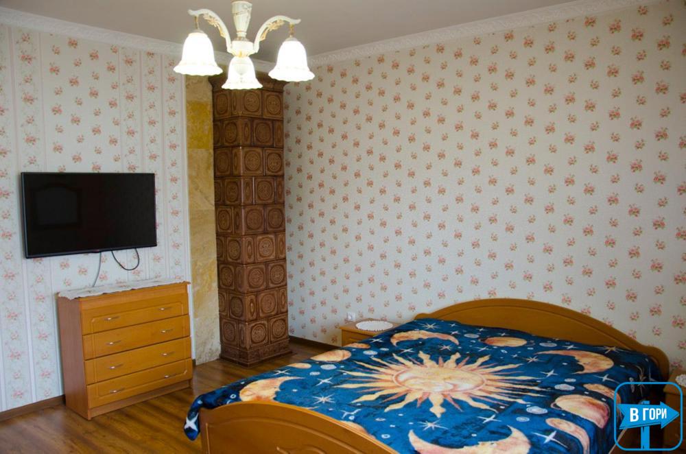 На первом этаже: бюджетный номер (двуспальный диван, шкаф для одежды, телевизор, санузел (душ, туалет))