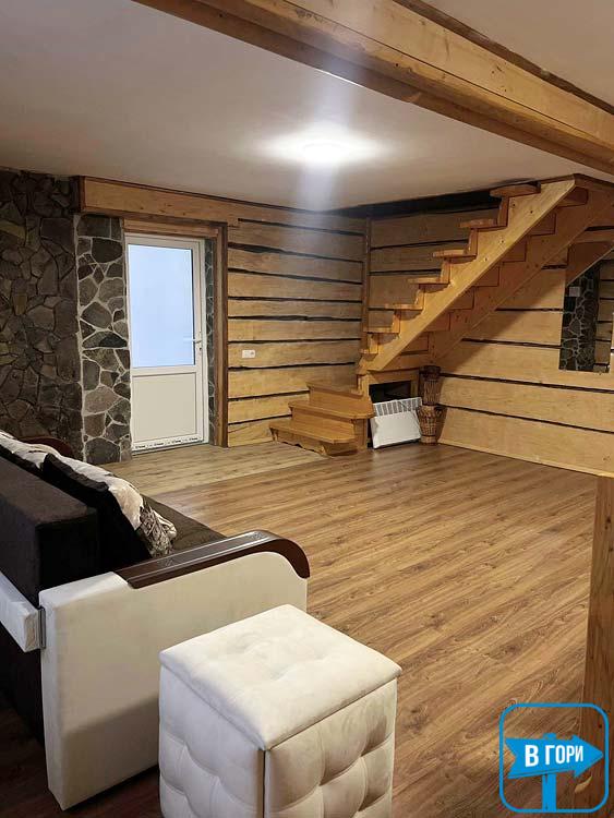 На втором этаже — 2 двухместные номера (двухспальная или 2 односпальные кровати, вешалка для одежды, телевизор, в одном номере есть балкон и дополнительное место — раскладной диван).
