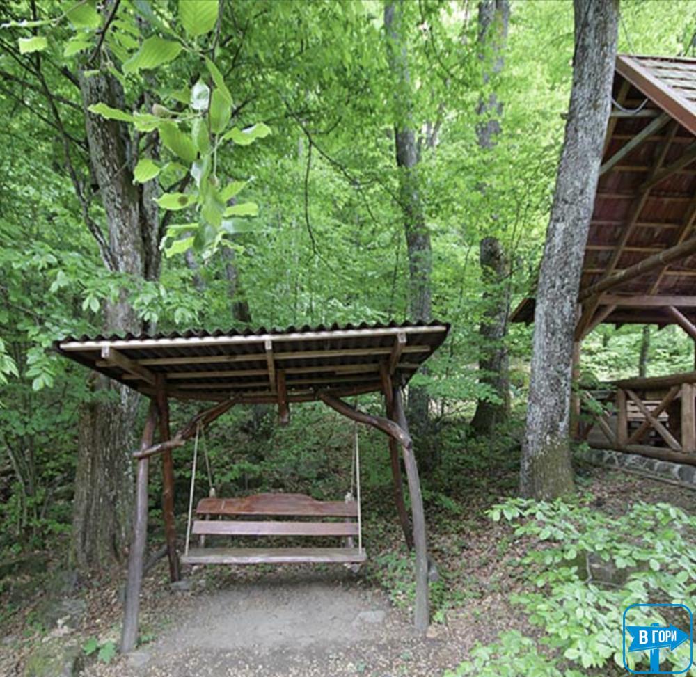 Здесь также есть беседка, мангал и качели для отдыха на открытом воздухе.