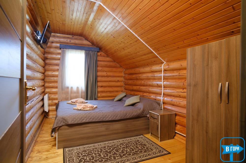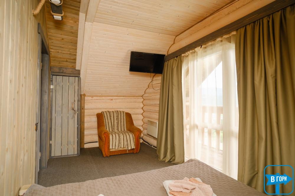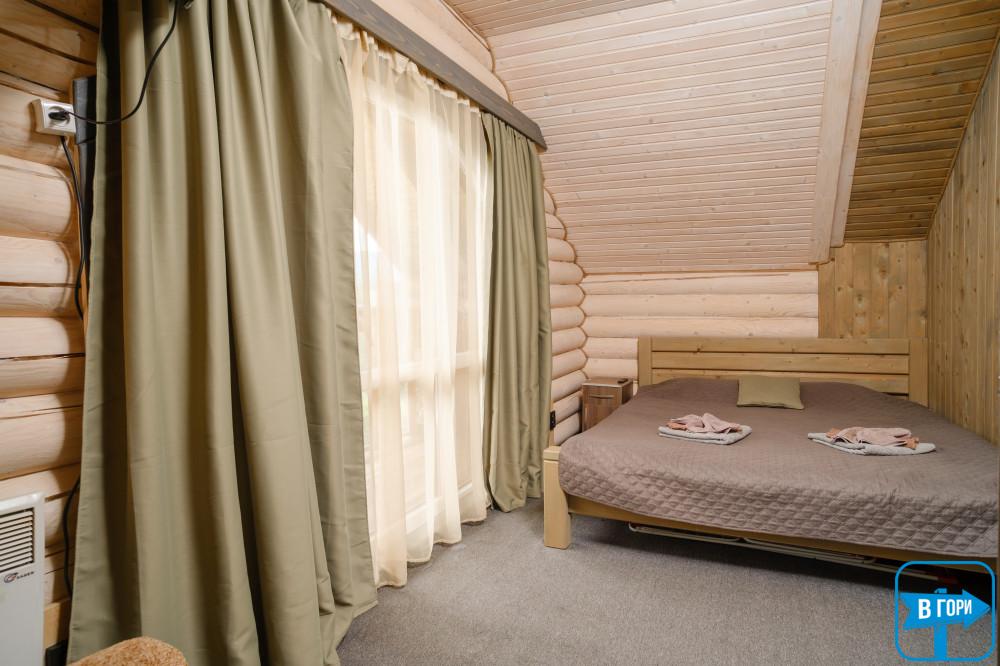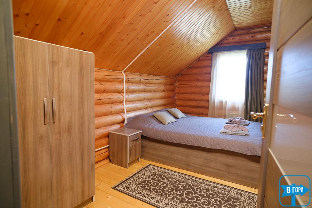 На втором этаже — 3 двухместных номера (в каждом есть двуспальная кровать, комод, выход на балкон).