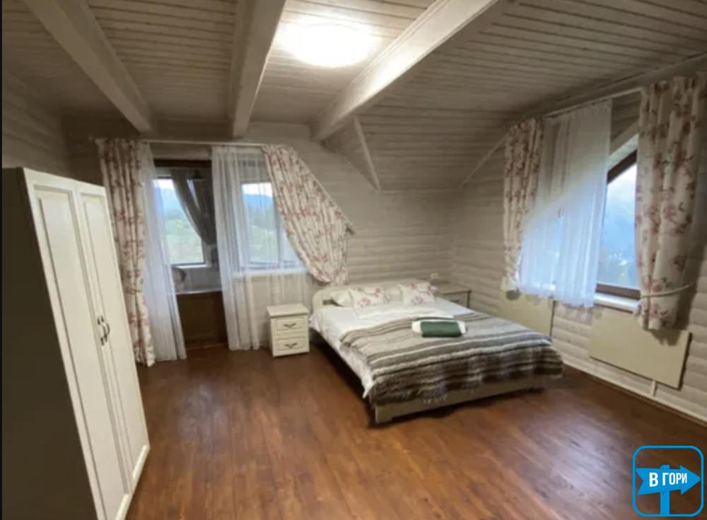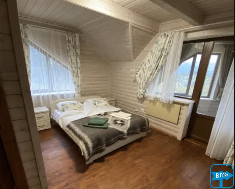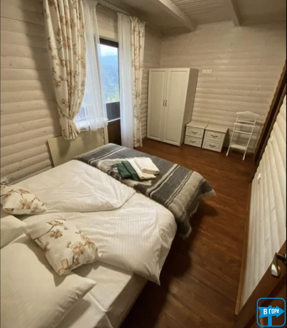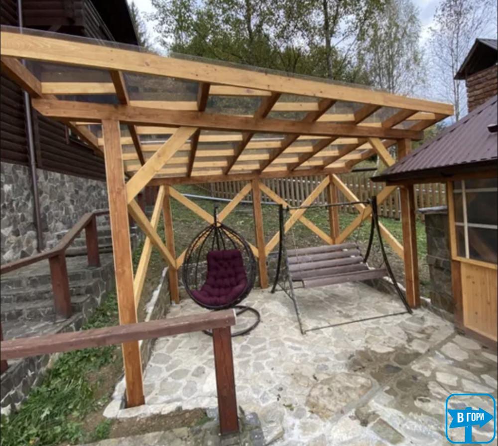 "Дом в горах" с террасой расположен в городе Яремче Ивано-Франковской области. От села Татаров жилье отделяют 11 км.