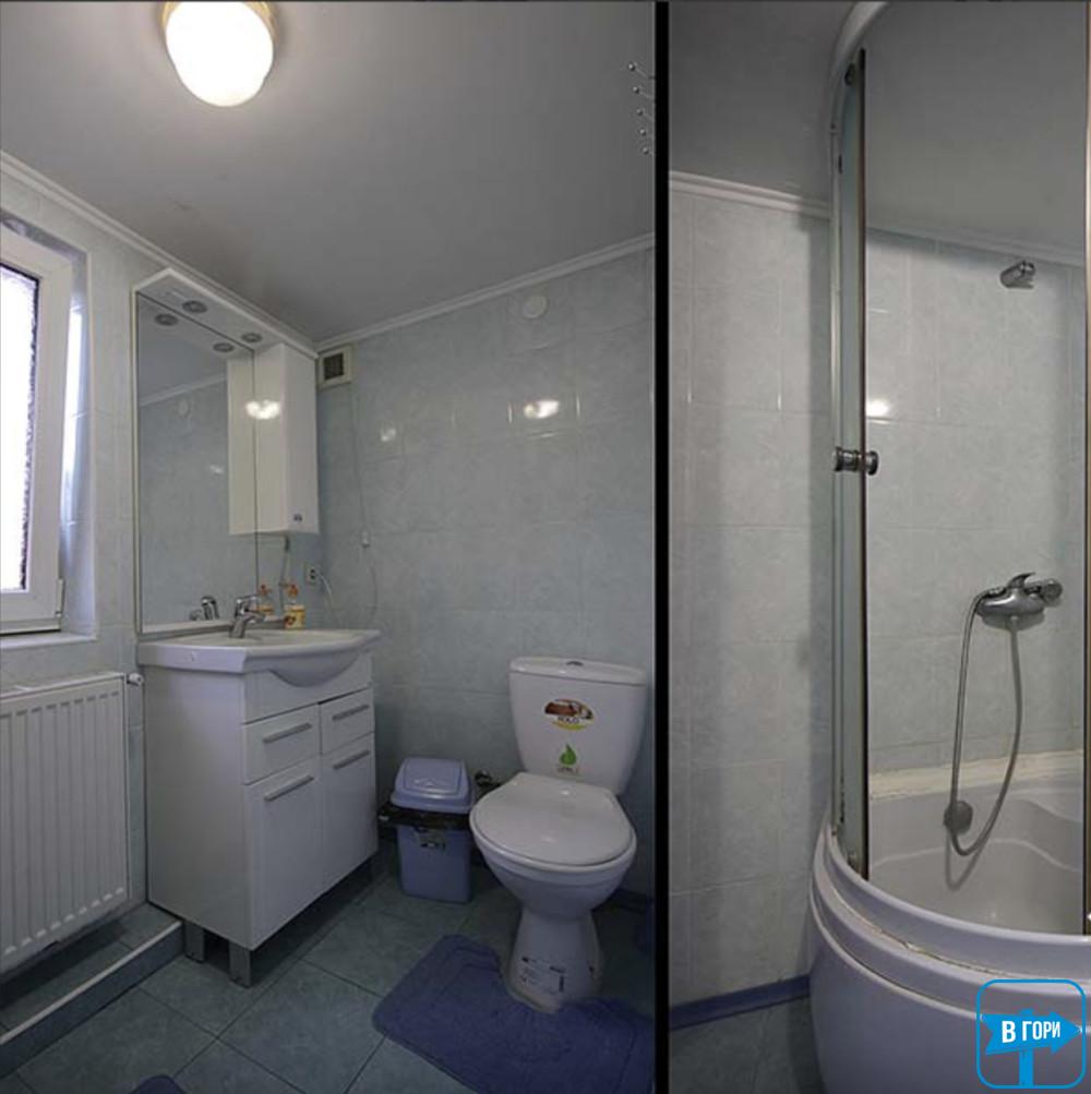 На втором этаже — холл (холодильник, электрочайник, микроволновая печь, стол со стульями), гостиная, 3 двухместных номера, 2 санузла.