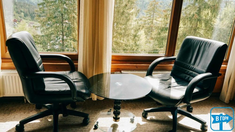 ● выход на балкон, где можно отдохнуть на шезлонгах и насладиться видом гор и города Яремче;