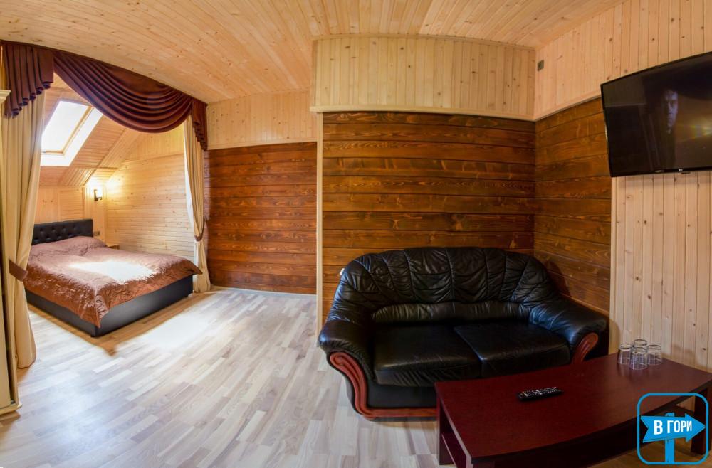 Сауна построена из натурального дерева, по лучшим новейшим технологиям, она может разместить 5-8 человек. Оборудована комнатой с кожаным диваном, плазменным телевизором, столом, а также мы предлагаем натуральный, карпатский чай (собранный в горах), чтобы Ваш отдых стал еще приятнее. Мы предоставляем бесплатно: тапочки, полотенца, простыни, банные шапочки и чай. Для разогрева сауны мы используем только дрова, не забывайте самостоятельно на камни печи доливать воду, чтобы была комфортная температура для Вашего пребывания в парилке. Стоимость: 500 грн за 1 час (до 5-ти человек), за каждого следующего человека доплата 50 грн. (Дети до 12 лет бесплатно!
