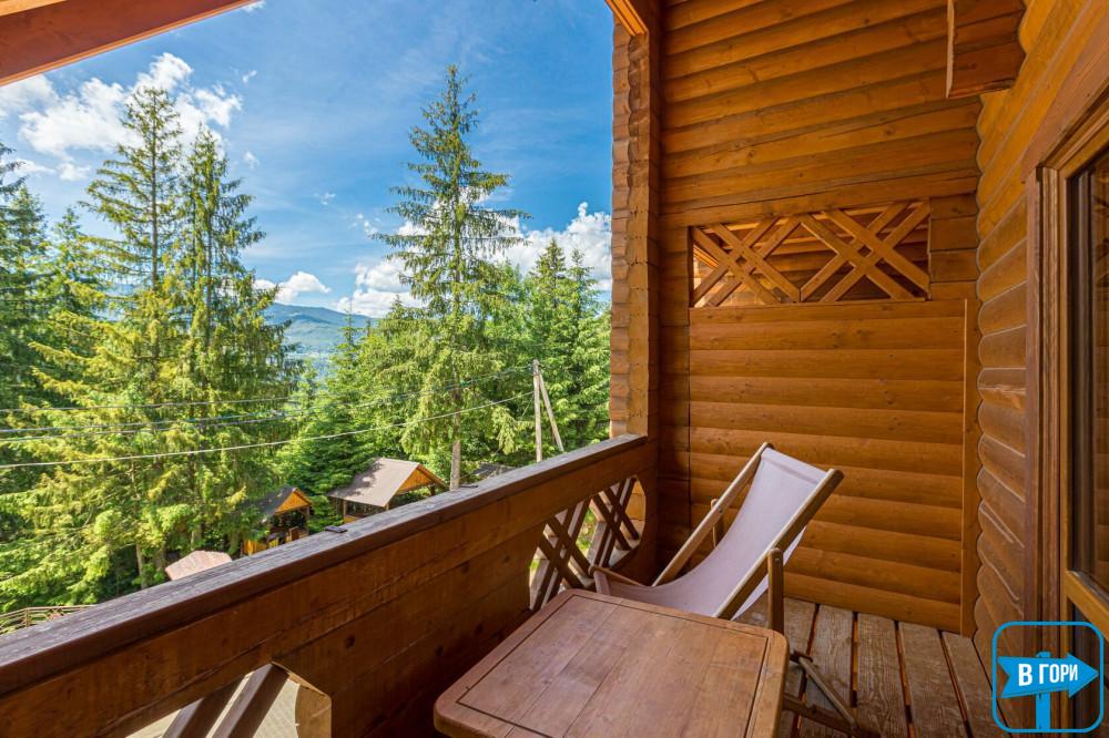 ● номер с выходом на балкон, где можно отдохнуть на шезлонгах и насладиться видом гор и города Яремче.