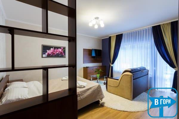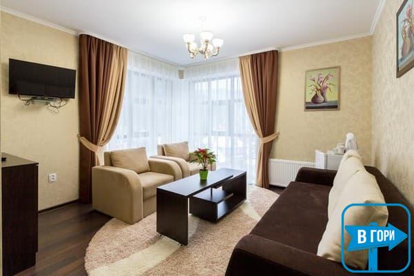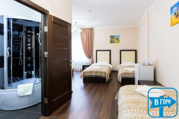 Гостиница насчитывает 8 номеров, где можно разместить от 2-х до 4-х гостей. Стандартные номера оснащены удобной мебелью, телевизором с плоским экраном, доступом Wi-Fi, холодильником и чайным набором. Современные ванные комнаты, удобны и функциональны. В номерах “полулюкс” добавлен мягкий диван. Номера “люкс” дополнены гостиной с мягким уголком и телевизором, а в ванных комнатах -душевые кабины с гидромассажем.