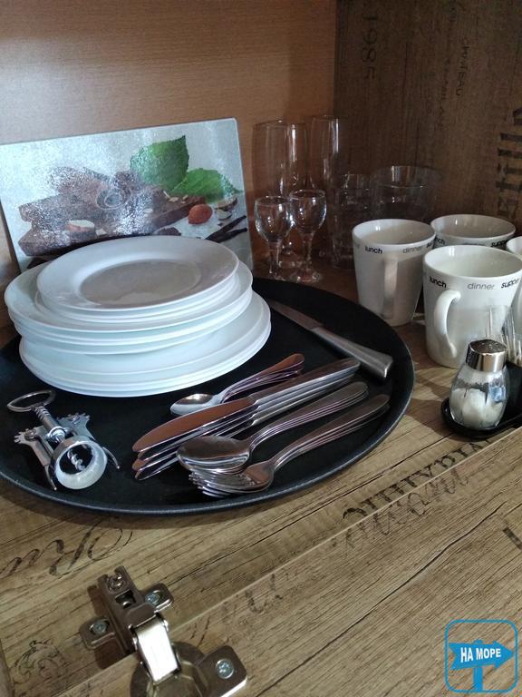 В каждом номере есть оборудованная кухня с кухонным гарнитуром, индукционной плитой, раковиной и набором посуды.