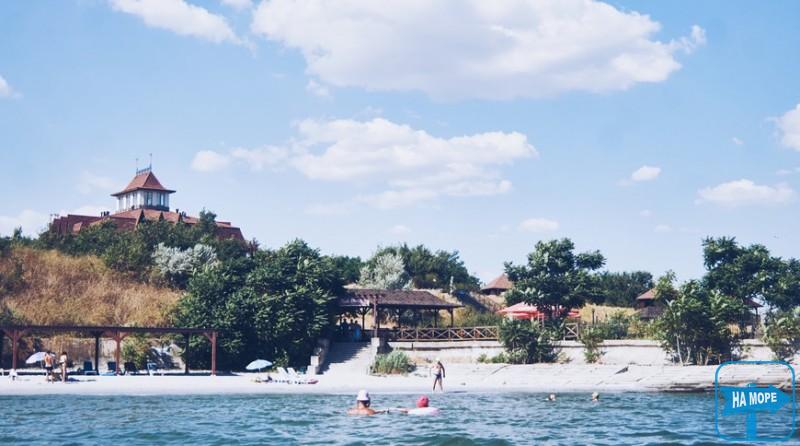Выйдя из тенистого парка и спустившись по небольшой лесенке к берегу, можно расположиться на приватном песчаном пляже в тени навеса или нежиться под южным солнышком прямо у кромки воды.