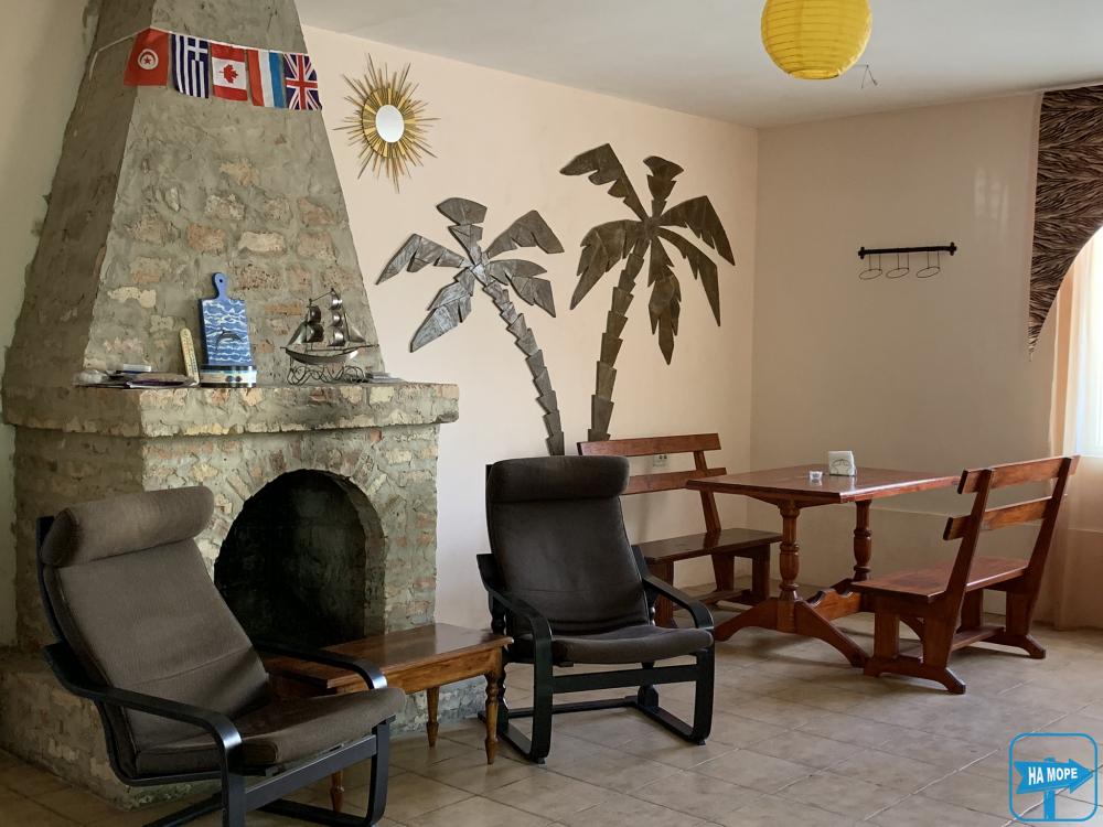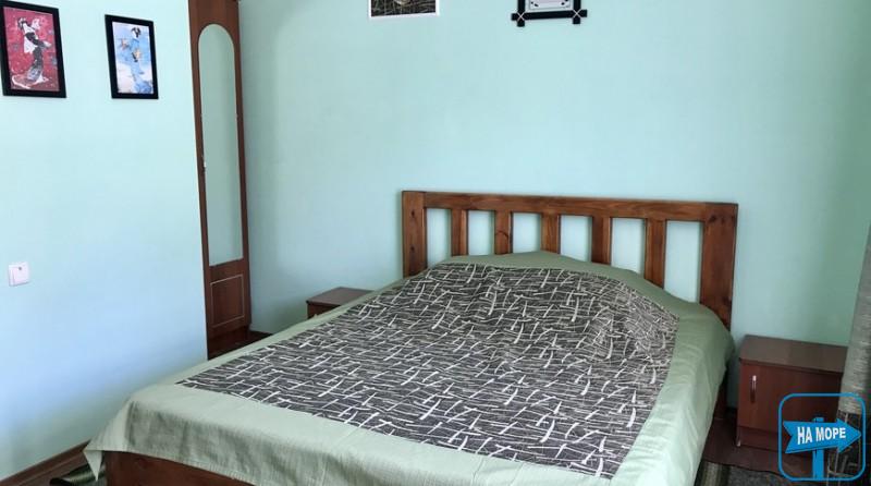 В номере - большая двуспальная кровать, шкаф для одежды, 2 тумбочки, журнальный столик. В каждом номере - туалет, душ с холодной и горячей водой круглосуточно,горячая вода от солнечных коллекторов( но если на улице холодно и дождливо-то увы... Хотя летом такой погоды,практически,не бывает!).
