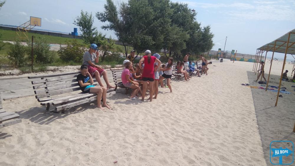 Один из лучших пляжей на побережье, с удобным выходом к морю, оборудован комфортными навесами от солнца, душем, кабинками для переодевания, а также питьевыми фонтанчиками. На территории пляжа установлена спасательная вышка укомплектованная согласно требованиям МЧС, благодаря чему, дети всегда в безопасности. Глубина моря на протяжении 10 метров от берега не более 1,5 метра. Акватория для купания детей выделяется буйками. Купание и прием солнечных ванн контролирует врач. Пребывание на пляже проводится под контролем инструкторов по физкультуре, матросов-спасателей и вожатых.
