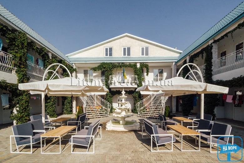На территории пансионата есть бассейн, зоны отдыха с удобными диванами, фонтан, водопад с рыбками. К услугам отдыхающих спутниковое телевидение, по всей территории и в номерах бесплатный WI-FI интернет, мангал, площадка для приготовления шашлыка.