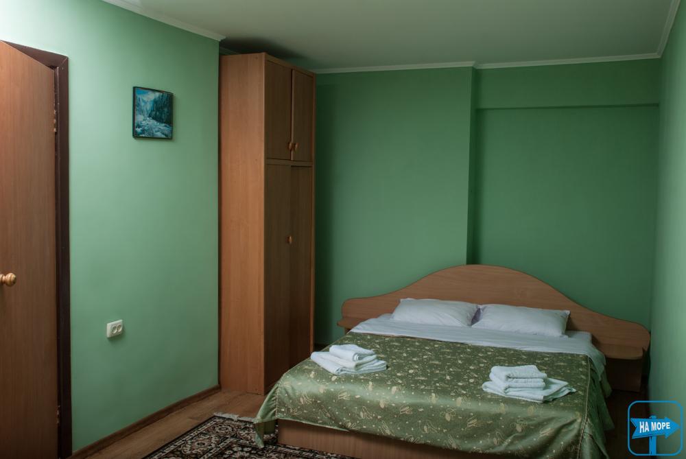 В номере: шкаф, кровать, тумбочка, TV, холодильник, кондиционер, душ, туалет, балкон.