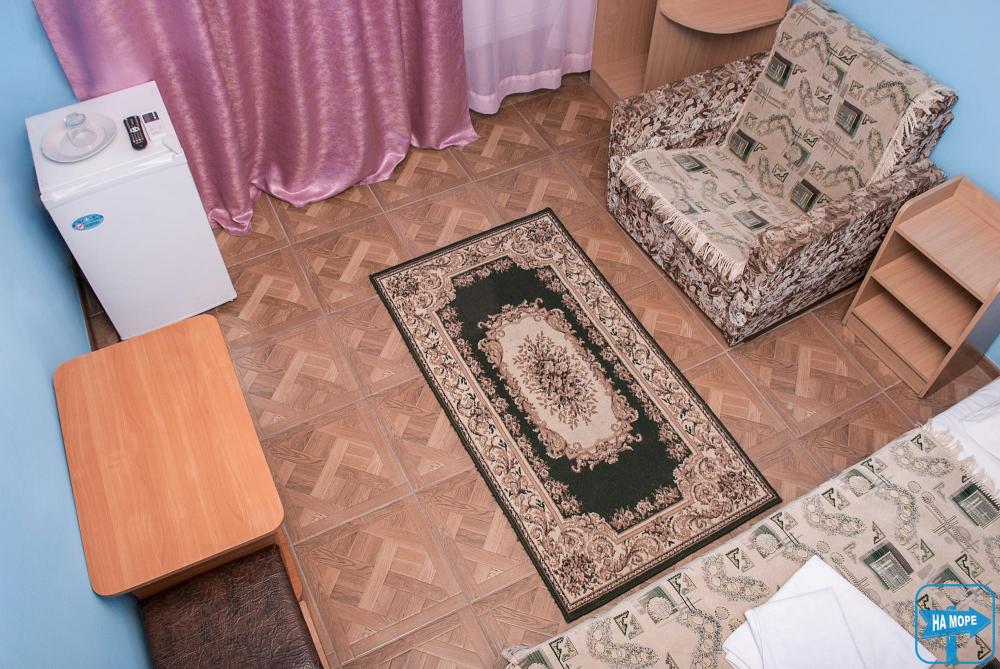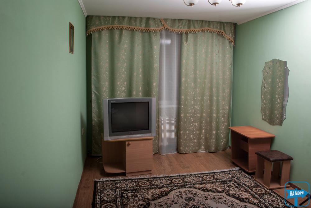 В номере: шкаф, 2 кровати, 2 тумбочки, TV, холодильник, душ, туалет, балкон.