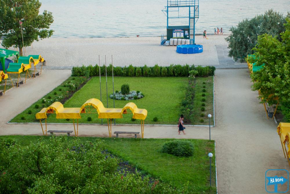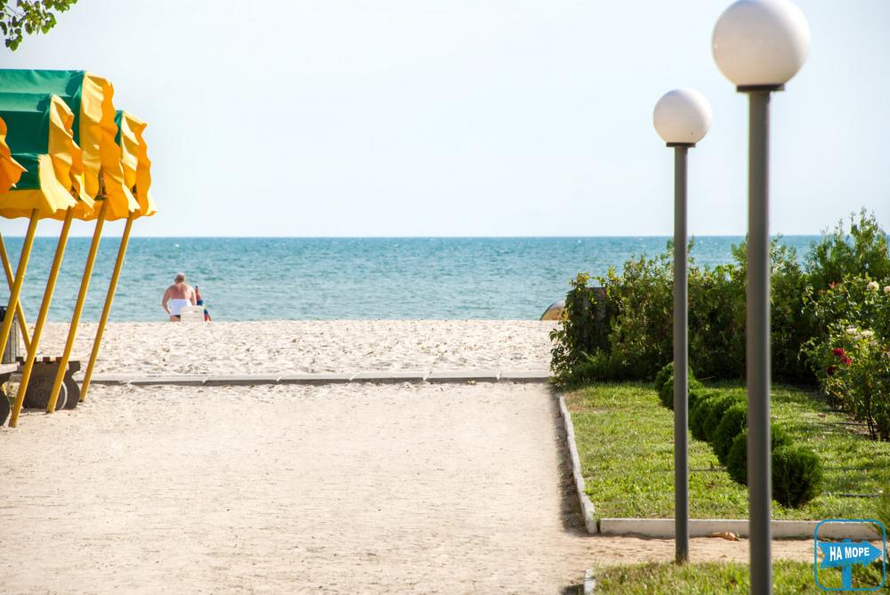 Чистейший пляж Лазурного побережья является частью территории Санатория с удобным и близким выходом к морю. Пляж оборудован комфортными навесами от солнца, душевыми, кабинками для переодевания, а также фонтанчиками с питьевой водой. На территории пляжа расположена спасательная станция укомплектованная обученным персоналом с необходимым оборудованием, согласно требованиям МЧС. Глубина моря на протяжении 10 метров от берега составляет не более 1,5 метра, что обеспечивает комфортный отдых детям и взрослым.