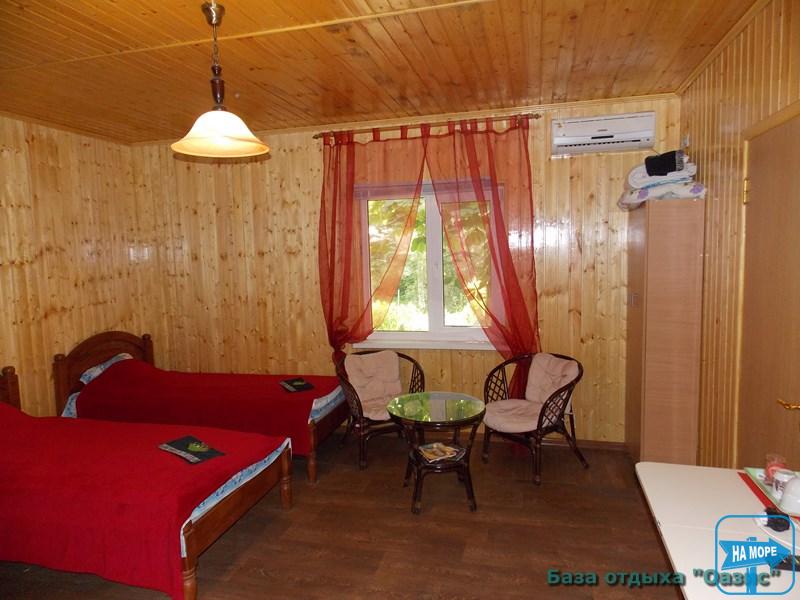 Однокомнатный отдельный большой домик, размером 7х5 м, для семейного отдыха семьи, состоящей из четырех человек (с двумя детьми) недорогой категории "Стандарт" (без дополнительных удобств в номере).