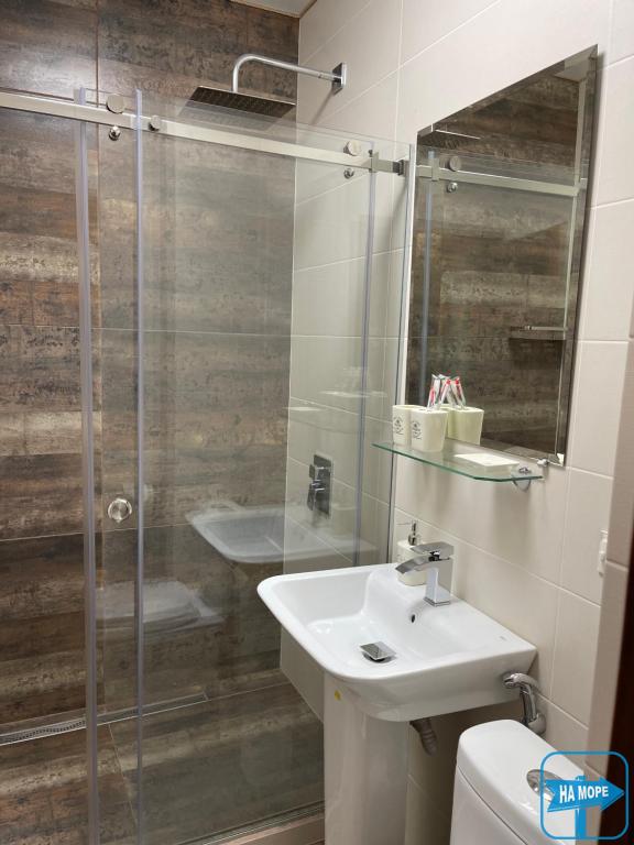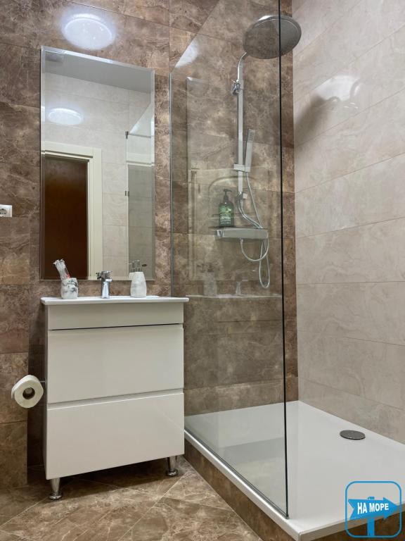 - Индивидуальная ванная комната с душем и ванной.