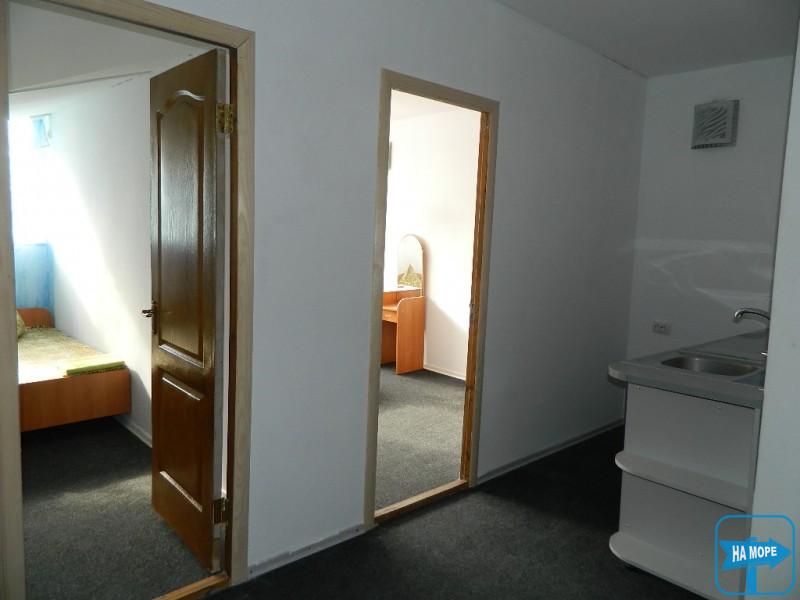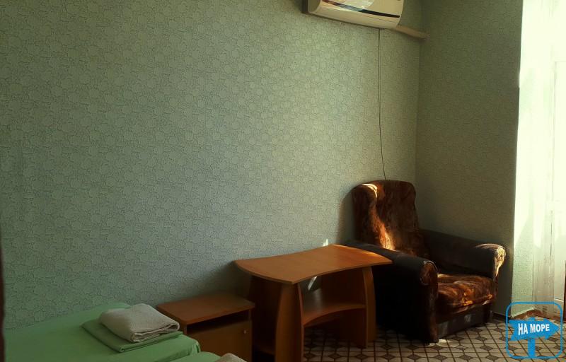 Однокімнатний номер в Морському корпусі, який стоїть прямо на пляжі, кожен з власним входом. У номерах санвузол; холодильник, електрочайник; кондиціонер; телевізор;