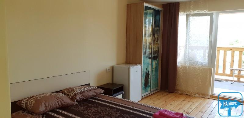 Однокімнатні номери в морському корпусі, який стоїть прямо на пляжі, кожен з власним входом. У номерах: санвузол; холодильник, електрочайник; кондиціонер; телевізор; двоспальне ліжко; шафа купе крита веранда з дерев'яними меблями.