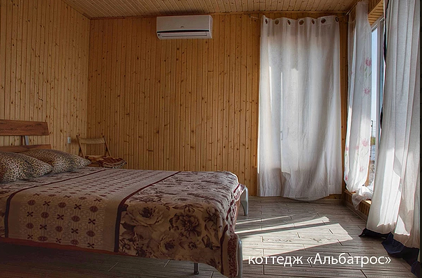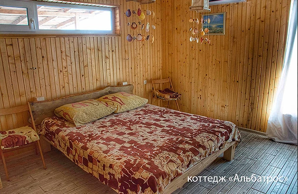 Дерев'яний котедж 2006 року. Дві спальні по 10 кв. м. В одній -двоспальне ліжко, в другій - великий диван, телевізор. У кожній спальні – кондиціонер. Кухня-їдальня 15 кв. м Санвузол 6 кв. м Причал 25 кв. м. Кухня обладнана всім необхідним: холодильник, плита, чайник, посуд. Мангал. 4 спальних місця