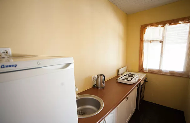 Ми не прихильники нав'язувати нашим клієнтам, що і коли вони є, тому надаємо повну свободу в самостійному приготуванні їжі. Готуйте звичні страви із куплених Вами продуктів. Найближчий заклад громадського харчування знаходиться за 850 м від пансіонату – якщо Ви захочете урізноманітнити свій раціон. У нашому барі є завжди свіже та смачне розливне пиво, місцеві морепродукти, закуски та снеки.