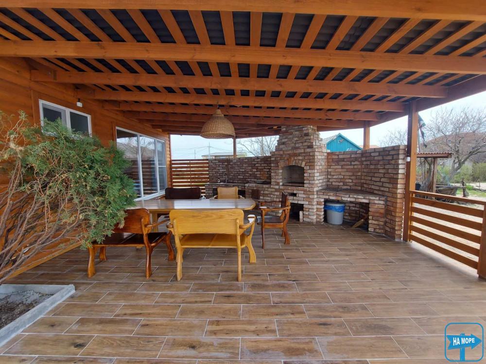Дерев'яний котедж 2017 року будівлі. Дві спальні по 14 кв. м у кожному по двоспальному ліжку, кондиціонеру. Кухня-їдальня 28 кв. м, з каміном та великим м'яким куточком, телевізор. Поєднаний санвузол (душ) 6 кв. м. Тераса 27 м.кв. Причал 18 кв. м. Барбекю-їдальня 40 кв. м. Навіс для двох машин. Кухня та барбекю обладнані всім необхідним: 6 спальних місць.