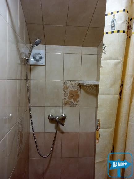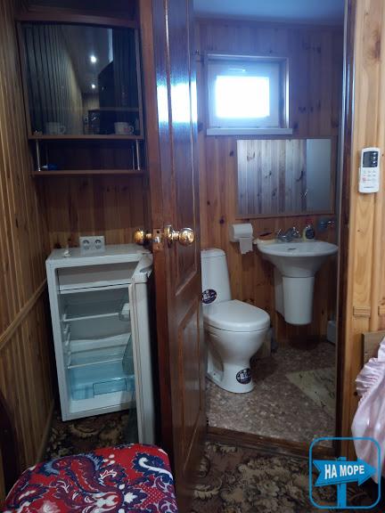 суміщений санблок з душовою кабіною, умивальником, унітазом та дзеркалом.