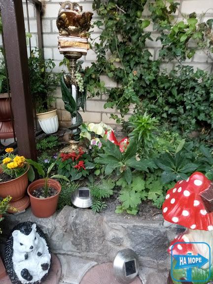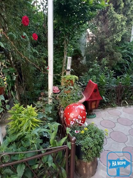 Просторий гарний двір із квітами, куточками для відпочинку та дитячими майданчиками чекають на своїх гостей. На території є повністю обладнана кухня та їдальня для гостей, а також додаткові душові кабіни та санвузли.