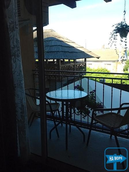 На загальних балконах біля номерів є стіл та стільці для відпочинку на відкритому повітрі.