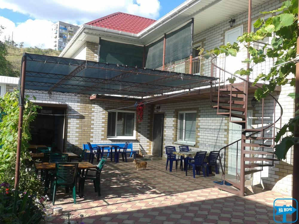 Наші номери розташовані за 3 хвилини від моря. Нова цегляна будівля з 2-х, 3-х та 4-х місними номерами. Нові ліжка, телевізори, кондиціонери, WI-FI, гаряча вода цілодобово. На території є дві кухні з усім необхідним: посуд, кухонні меблі, кухонне начиння, газові плити, мікрохвильові печі, холодильники, великий кам'яний мангал, а також стоянка для автомобілів усередині двору. Квітучий великий двір, велика кількість зелені та виноградних кущів зможуть залишити приємні враження від відпочинку, який Ви проведете у нас.