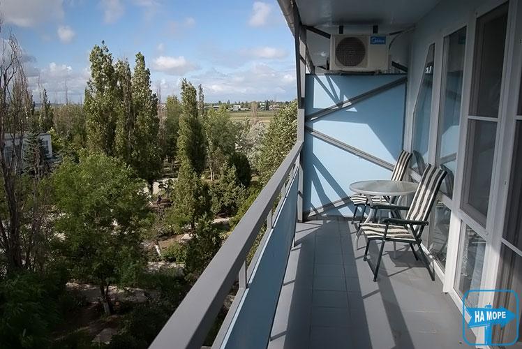 Номер складається з двох суміжних кімнат, спальня з двоспальним ліжком, вітальня з диваном, що розкладається, загальна площа 25-27 кв.м. Максимальне розміщення: 2 особи + 2 на додатковому місці. Оснащення номера: кондиціонер, TV, холодильник, санвузол з душем (в корпусі "Меотида" повнорозмірна ванна).