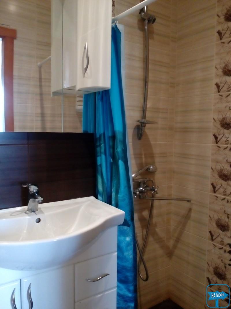 Комфортабельна кухня-їдальня в морському стилі, оснащена всією необхідною технікою (дві газові поверхні, духовка, мікрохвильова піч, місткі холодильники, кондиціонер, smart телевізор), посудом стане не тільки місцем приготування їжі, а й місцем спілкування та відпочинку від літньої спеки.