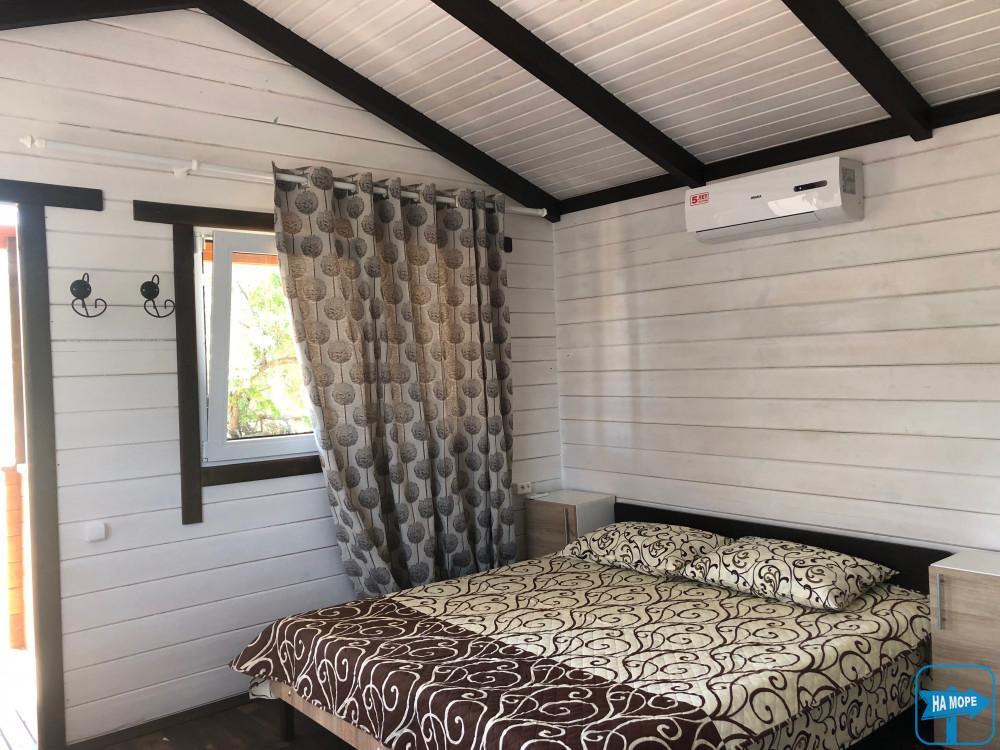 Меблі: одинарні ліжка з ортопедичними матрацами з можливістю зрушувати (у деяких номерах є двоспальні ліжка), шафа, кухонні меблі, меблі на терасі (стіл, стільці).