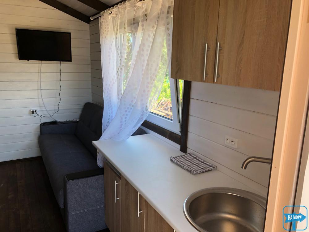 • Кожен номер обладнаний окремою верандою-терасою, а також окремою кухнею. Така конфігурація створює особливий, практично домашній затишок і дозволяє нашим гостям почуватися як удома. Крім того, наявність власної кухні в номері дозволяє мінімізувати контакти з іншими людьми, які характерні для закладів громадського харчування. До того ж ви завжди зможете урізноманітнити свій раціон шляхом замовлення їжі з доставкою або відвідуючи заклади громадського харчування.